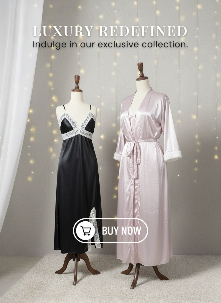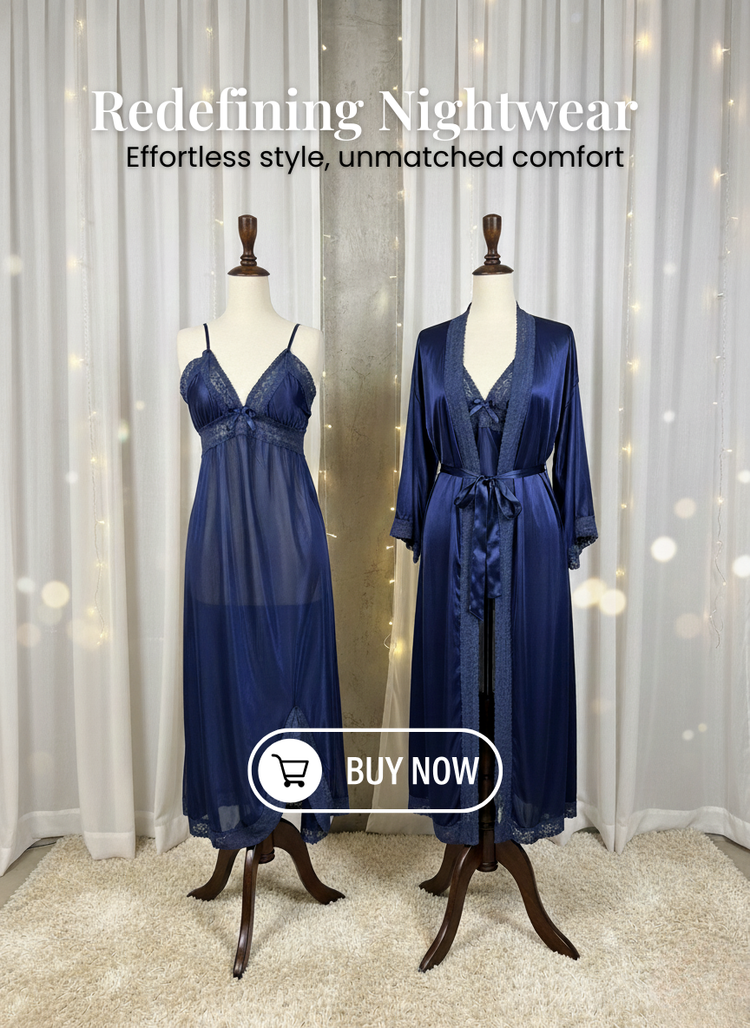 Elegant Satin & Lace Robe Set | 3-Piece Silky Nightgown
