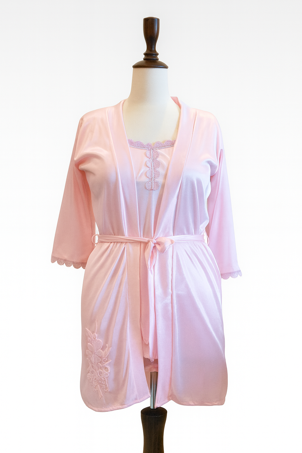 This 5-piece pink nighty set is the perfect blend of sophistication and sensuality. A must-have addition to your nightwear collection, offering versatile options for every mood and moment.