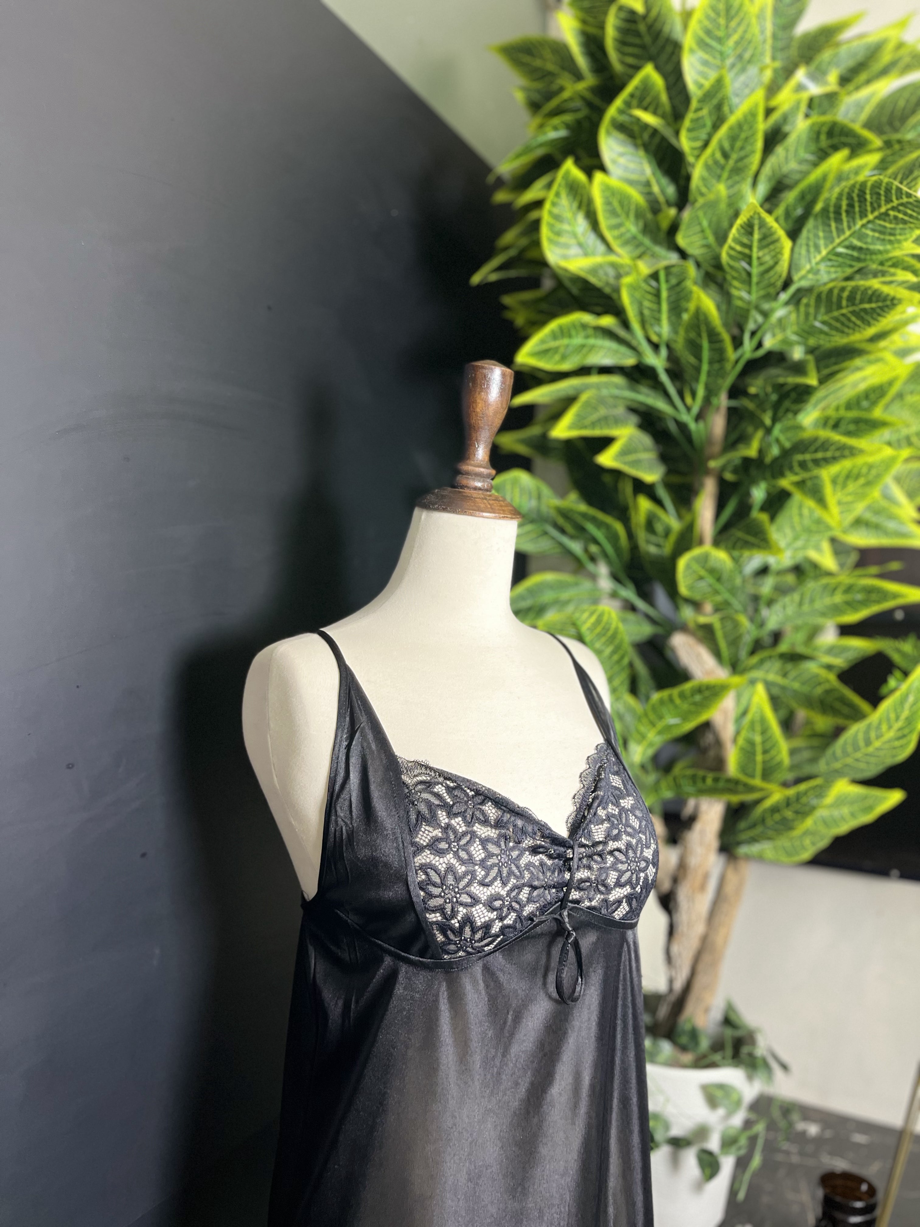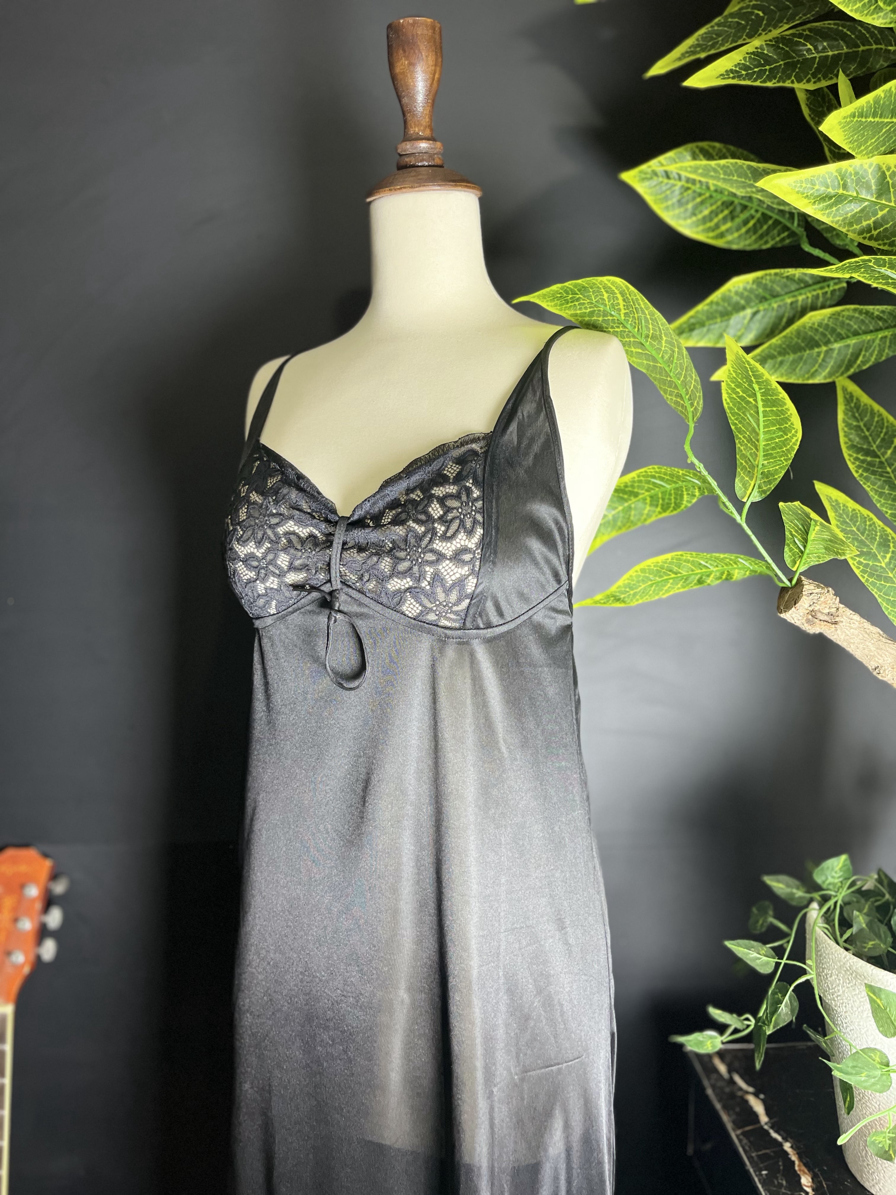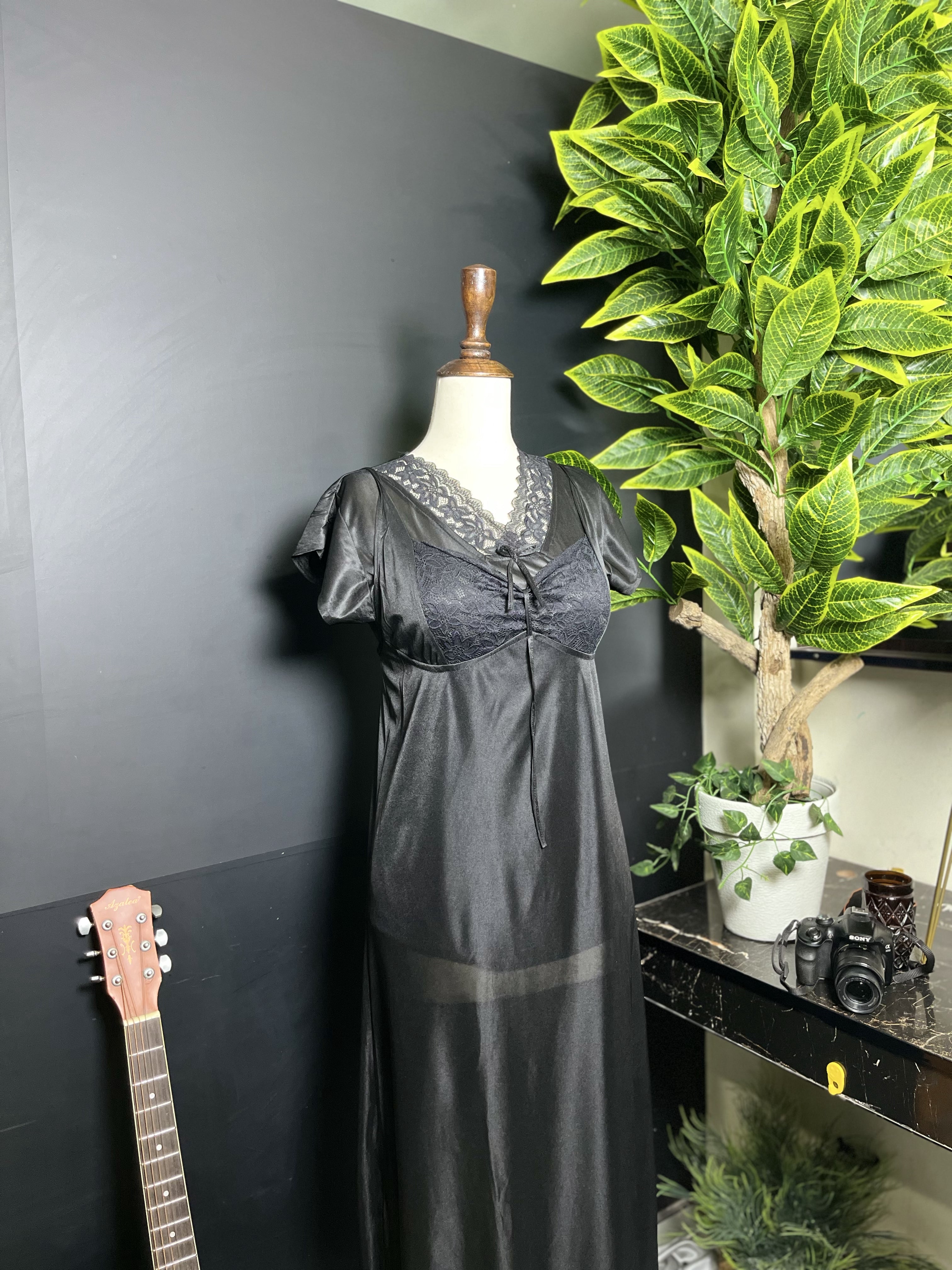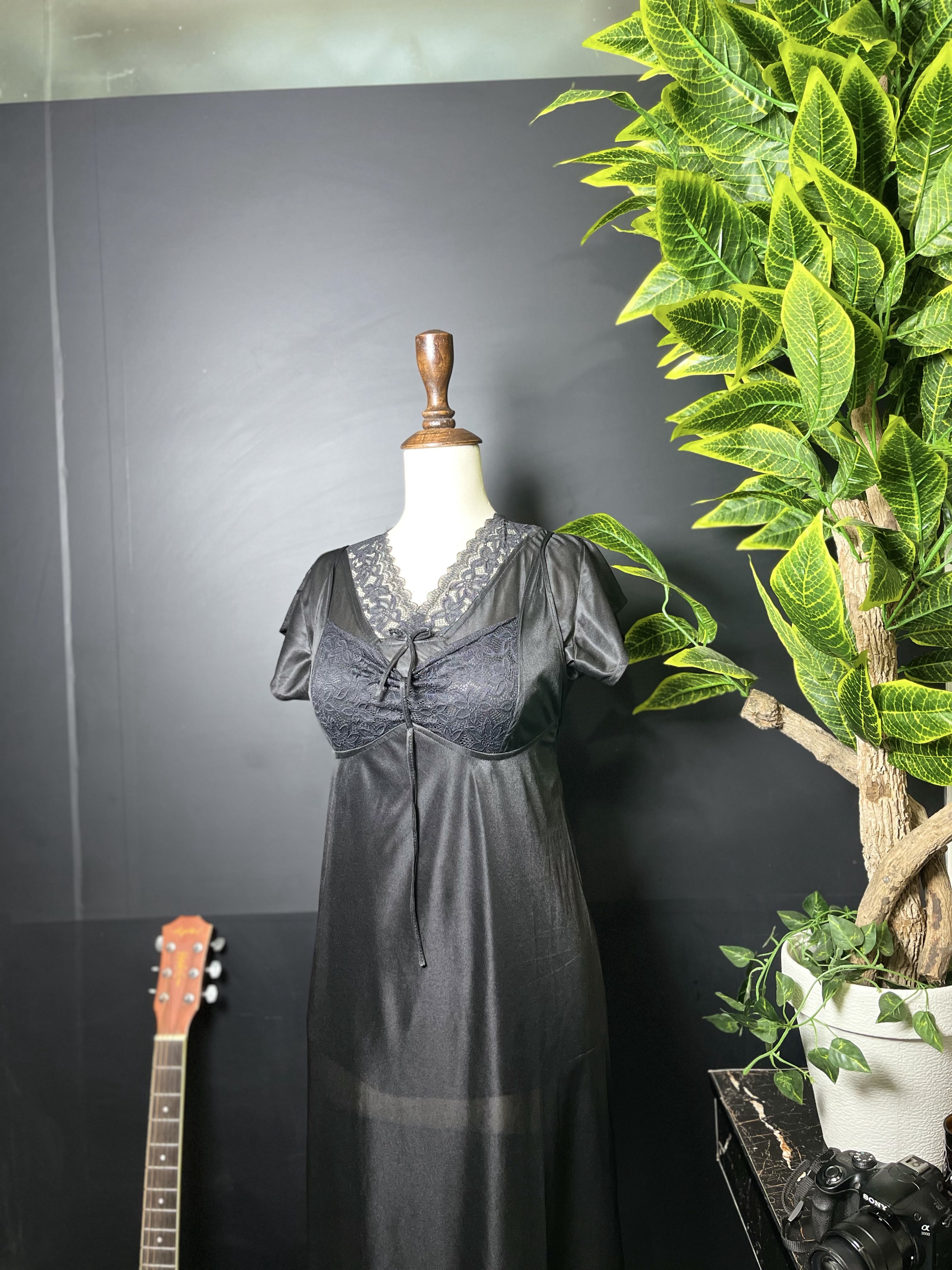 - The Maxi Nightgown: A sensual spaghetti-strap slip dress featuring a lace bodice and a long, elegant skirt.