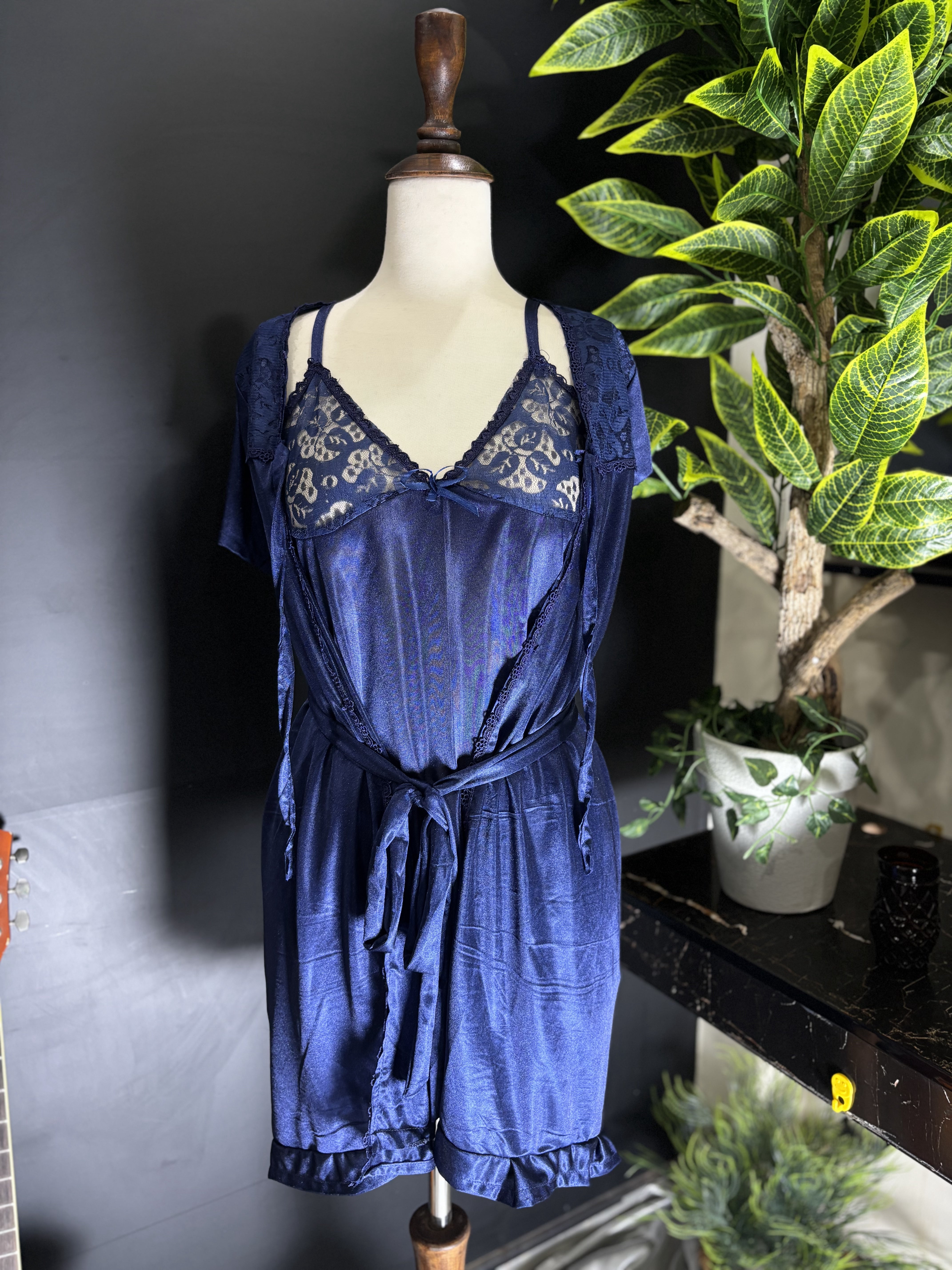 Elevate your evening routine with our exquisite Royal Blue Satin & Lace 2-Piece Sleepwear Set. Designed for the modern woman who values both comfort and allure, this set strikes the perfect balance between elegant lounging and seductive nightwear.